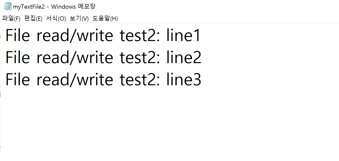 f.write('File read/write test2: line1\n') #(2) 파일 쓰기