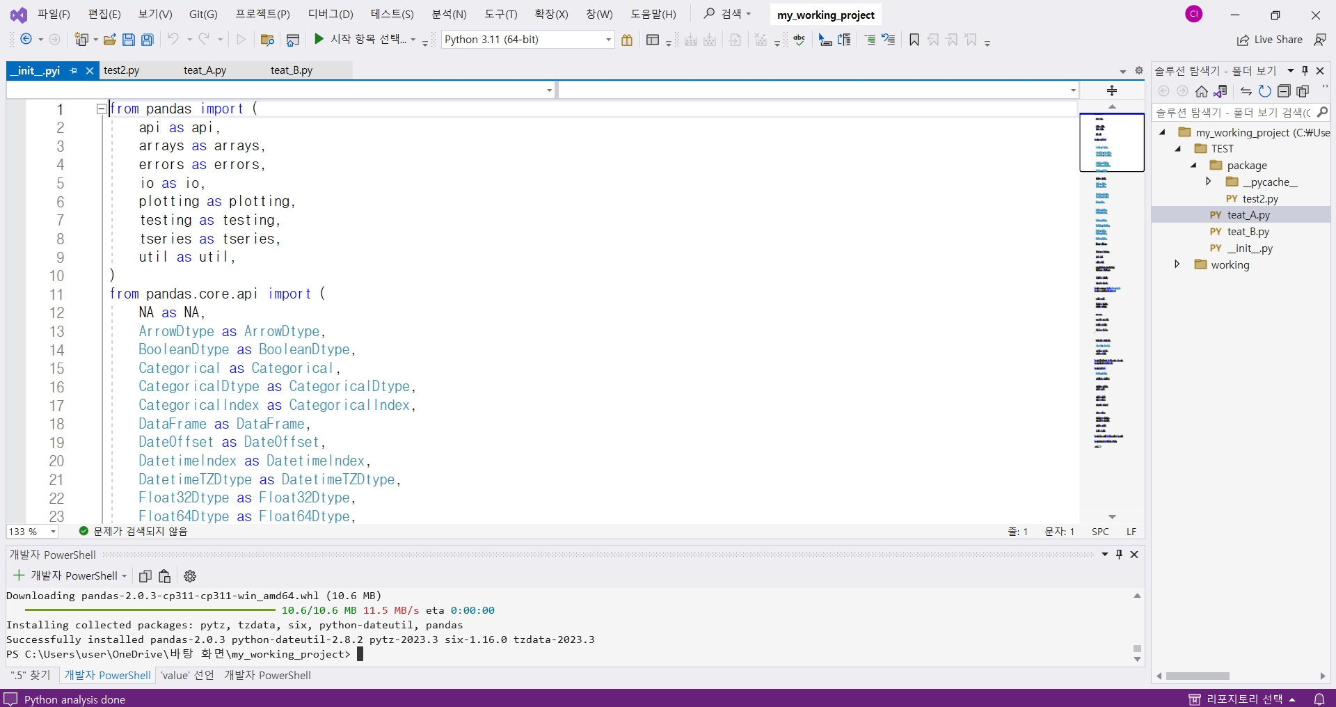 pandas를 클릭해보았습니다.