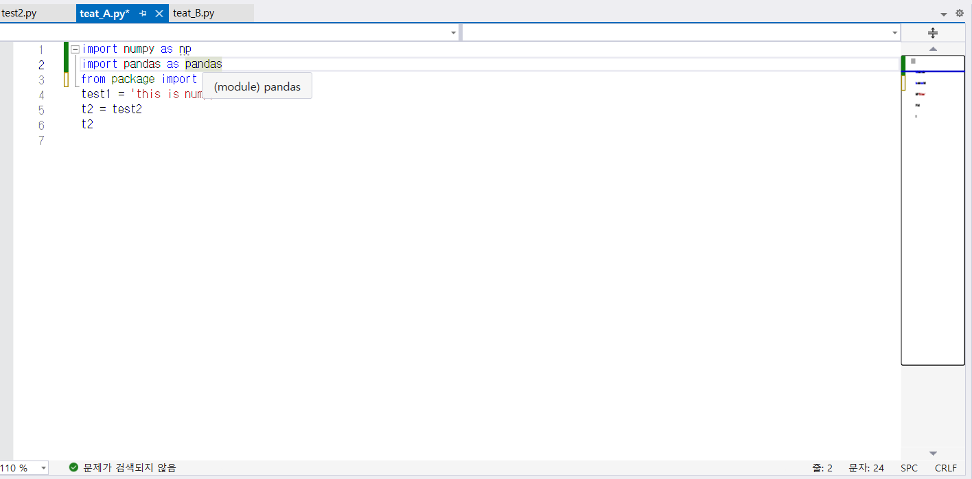 제 PC에서는 간단하게 test2 라는 py파일을 package 폴더에 넣어서 만들어 놓았습니다.