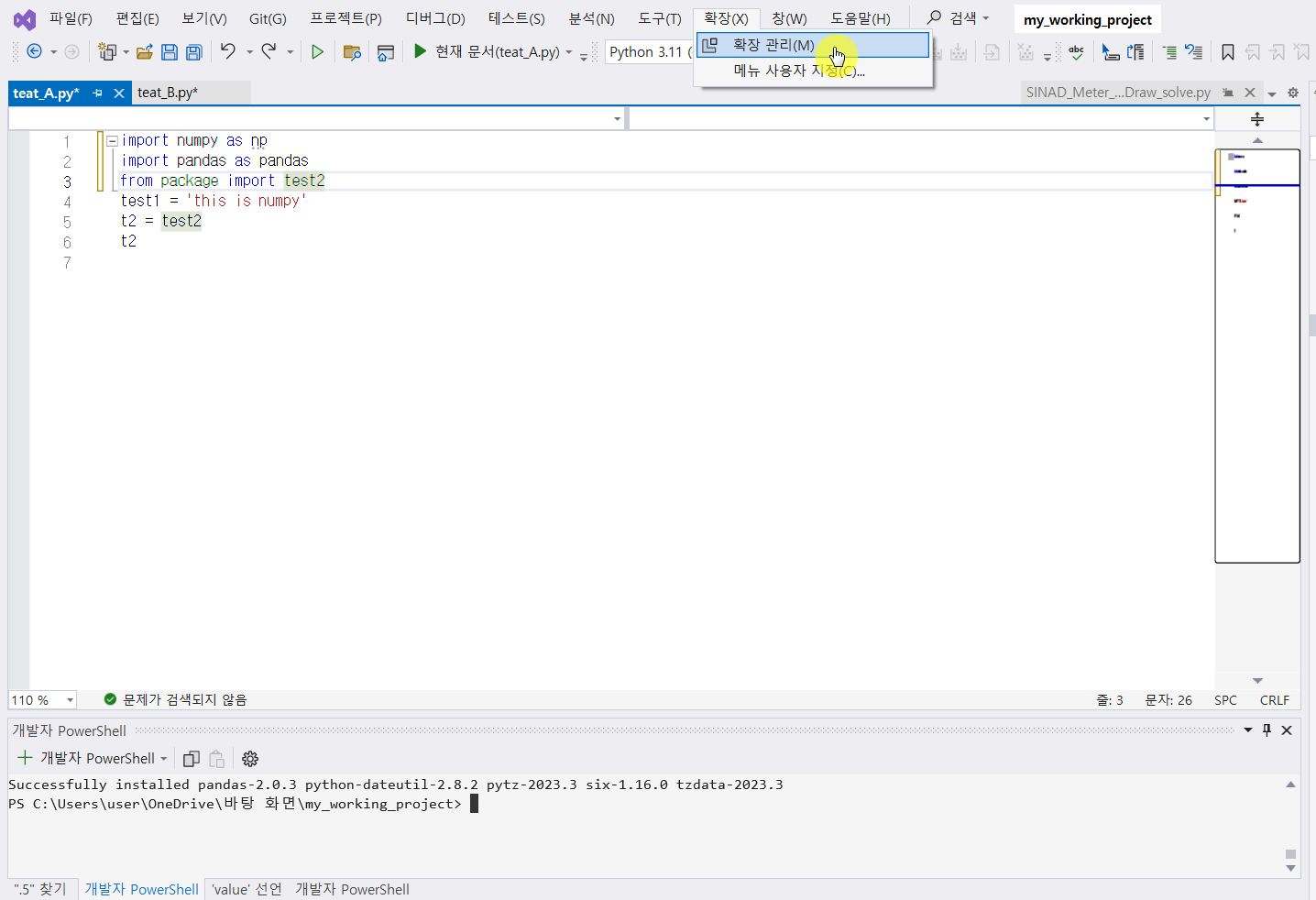 그대로 진행해주고, 아까 만들었던 test_A.py와 test_B.py를 확인해 줍니다.