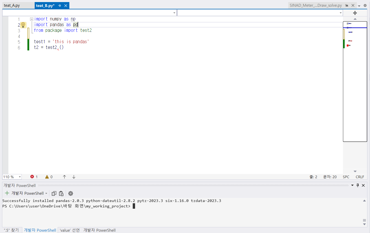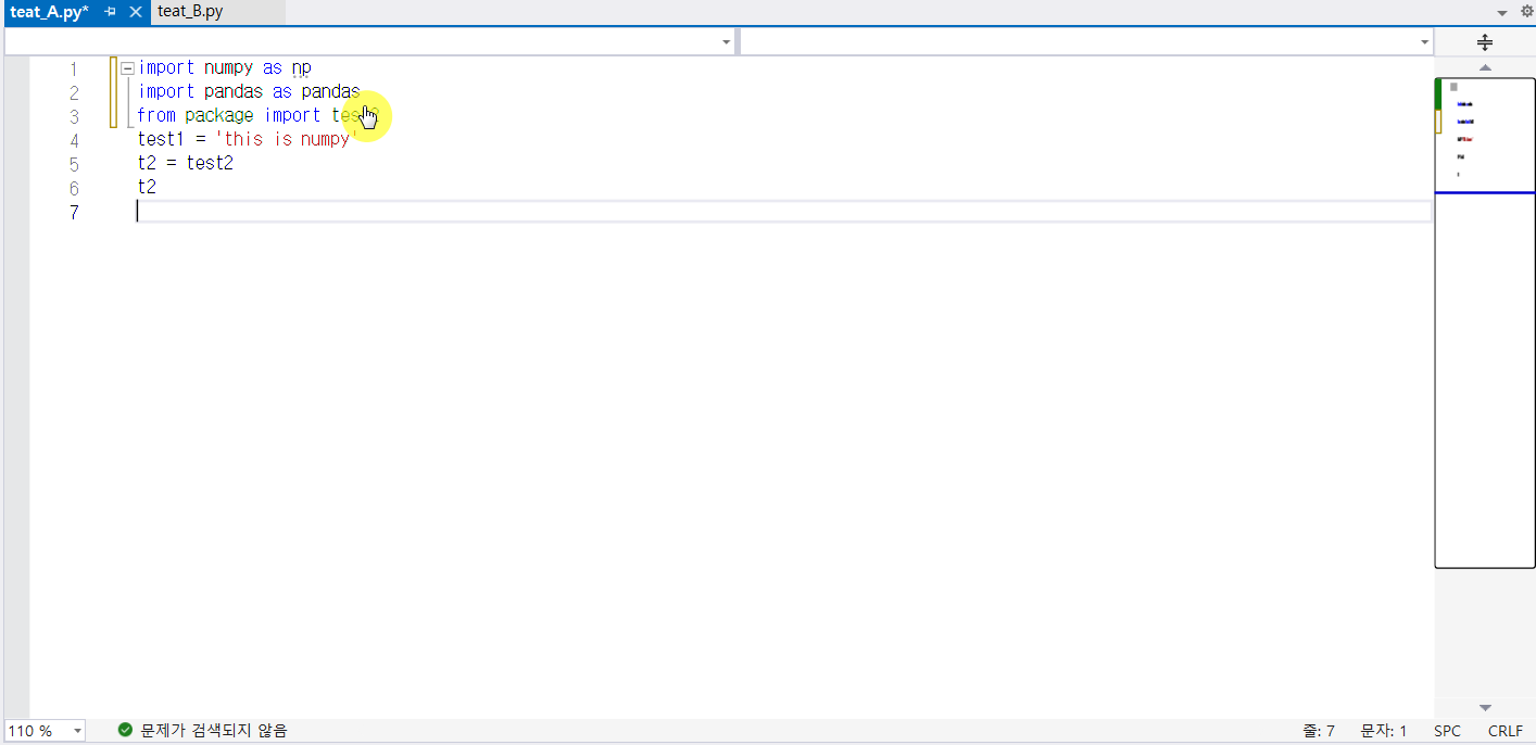 먼저, 간단하게 test_A.py 파일과 test_B.py을 만들어봤습니다.