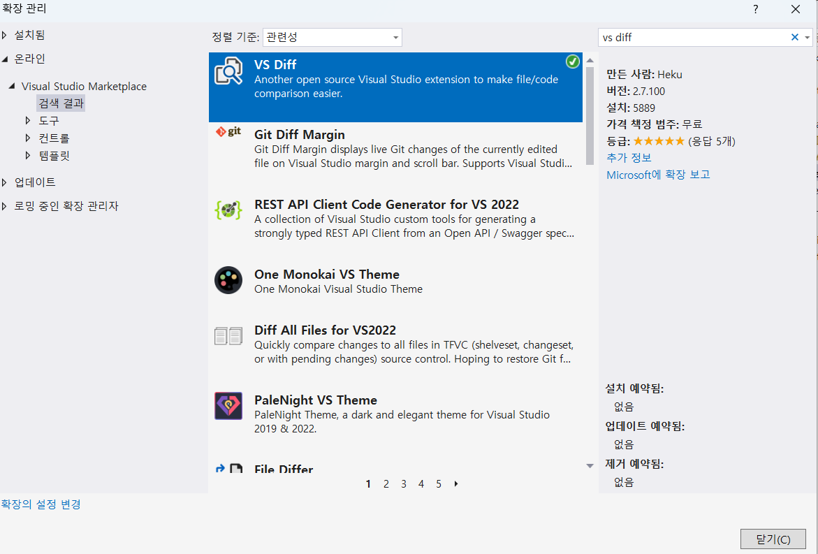 "한꺼번에 두가지 화면으로 수정사항 확인하기" - VS diff 설치