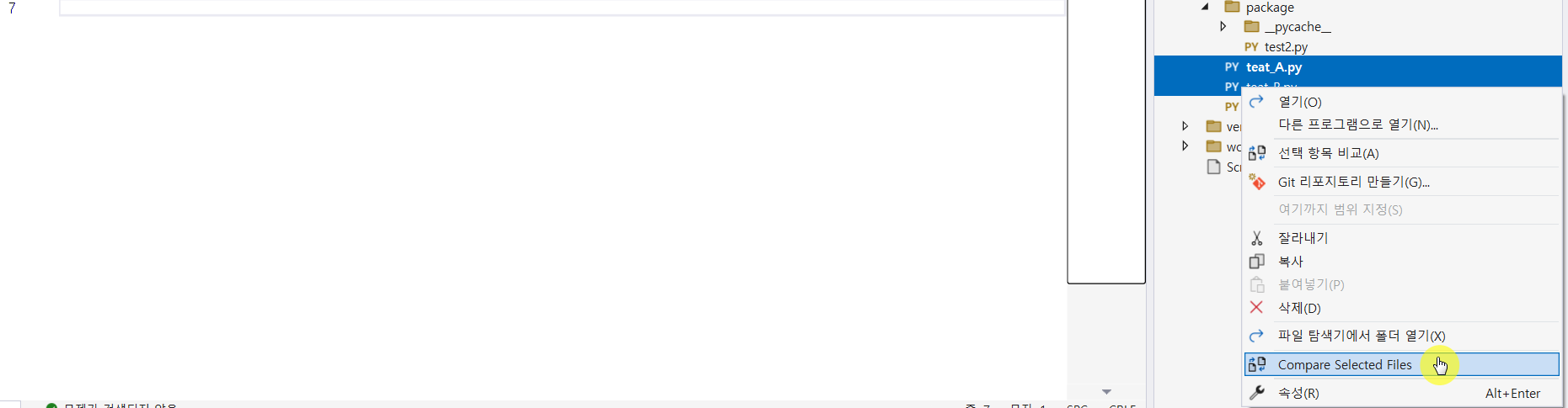 이제 Compare Seleted Files가 생긴 것을 볼 수 있습니다!