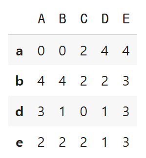 }, index=['a', 'b', 'c', 'd', 'e'])