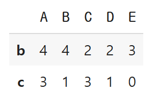 "E": np.random.randint(5, size=5)