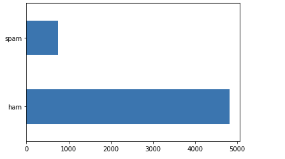 스팸이 아닌 데이터들이 거의 4000건 가까이 차이가 나는군요.