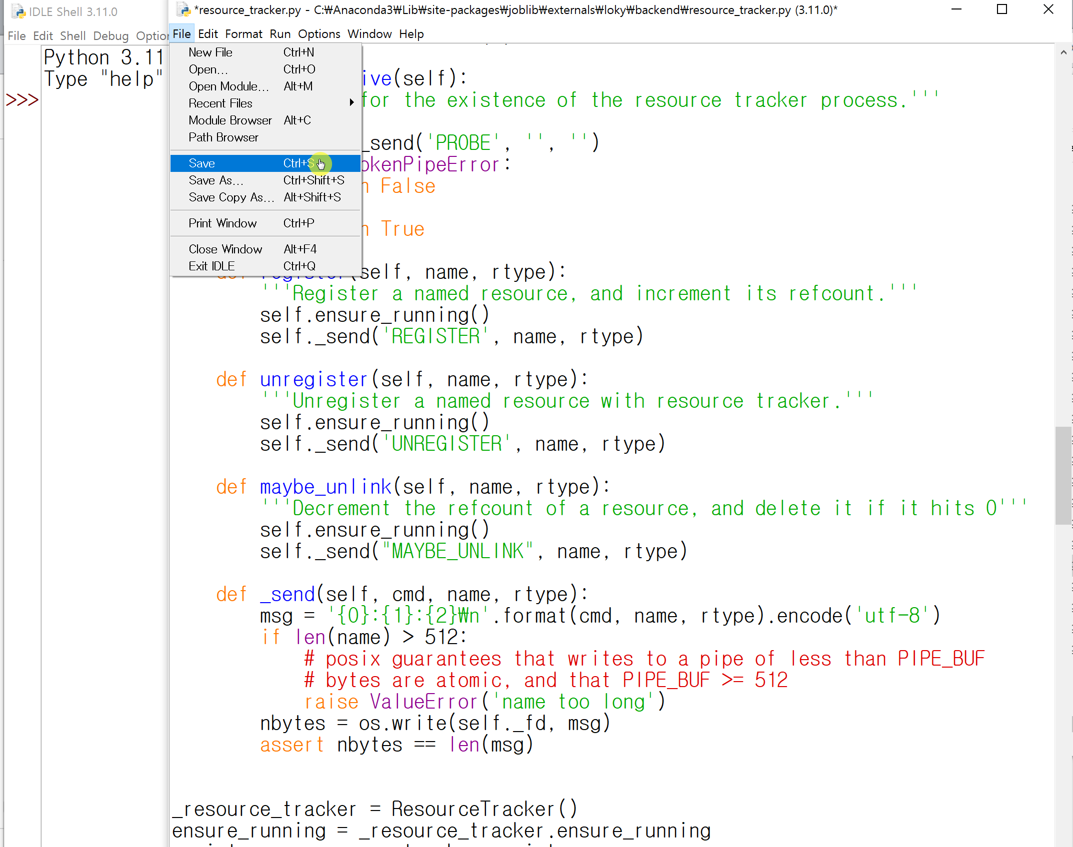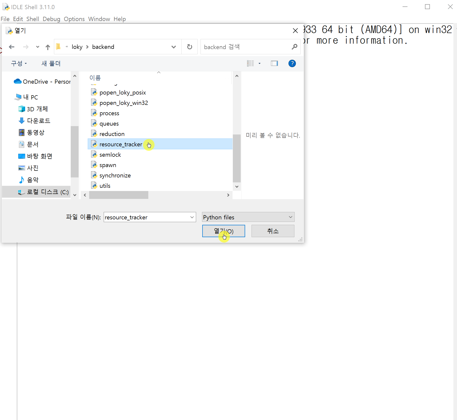 위 파일 탐색기에서 resource_tracker를 수정해야 합니다.