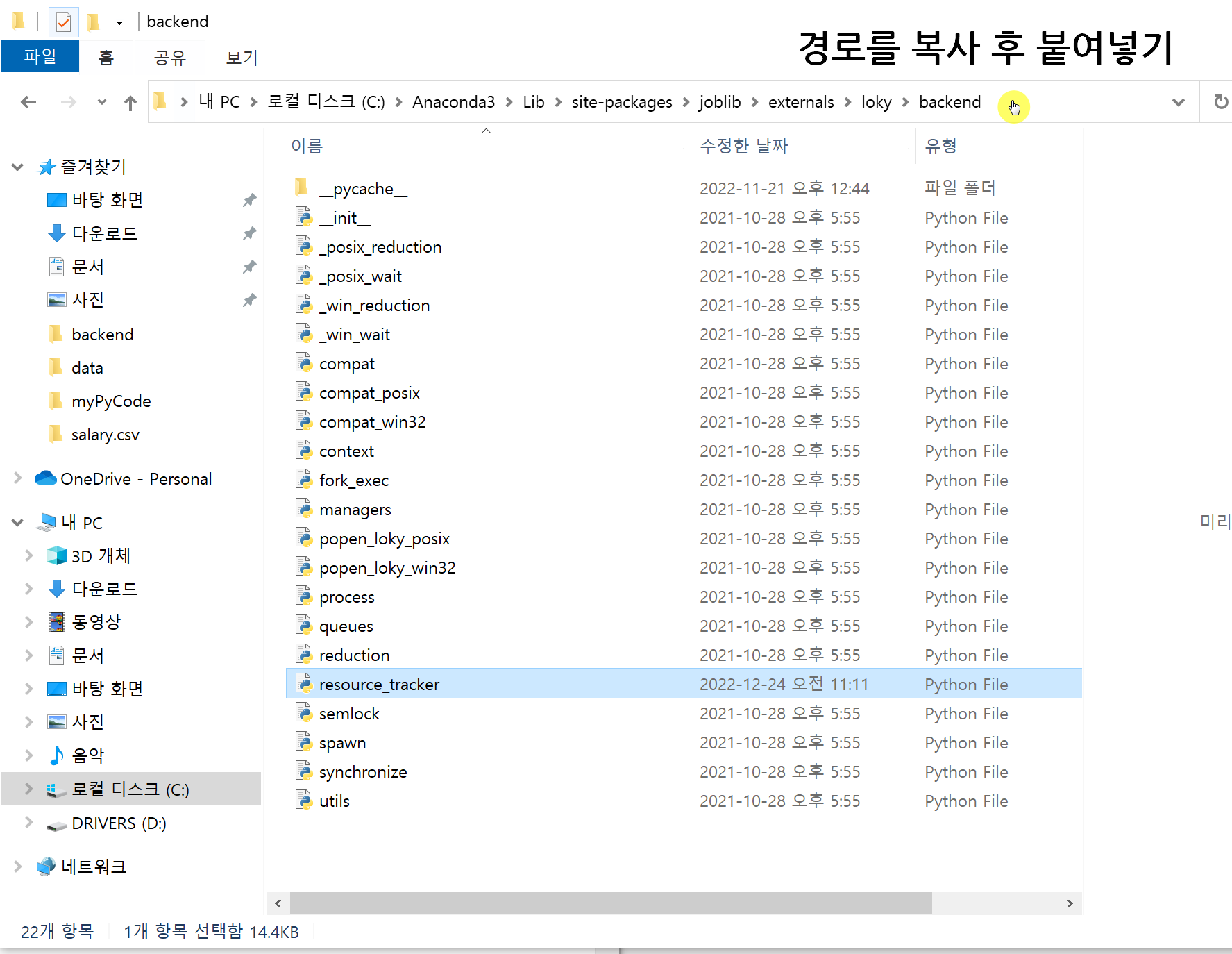 빨리 불러오기 위해서, 일단 해당 파일의 경로를 복사 했었습니다.