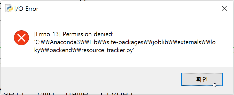 [Errno 13] Permission denied: 'C:WWAnaconda3WWLibWWsite-packagesWWjoblibWWexternalsWWlo kyWWbackendWWresource_tracker.py'