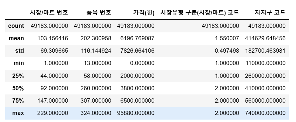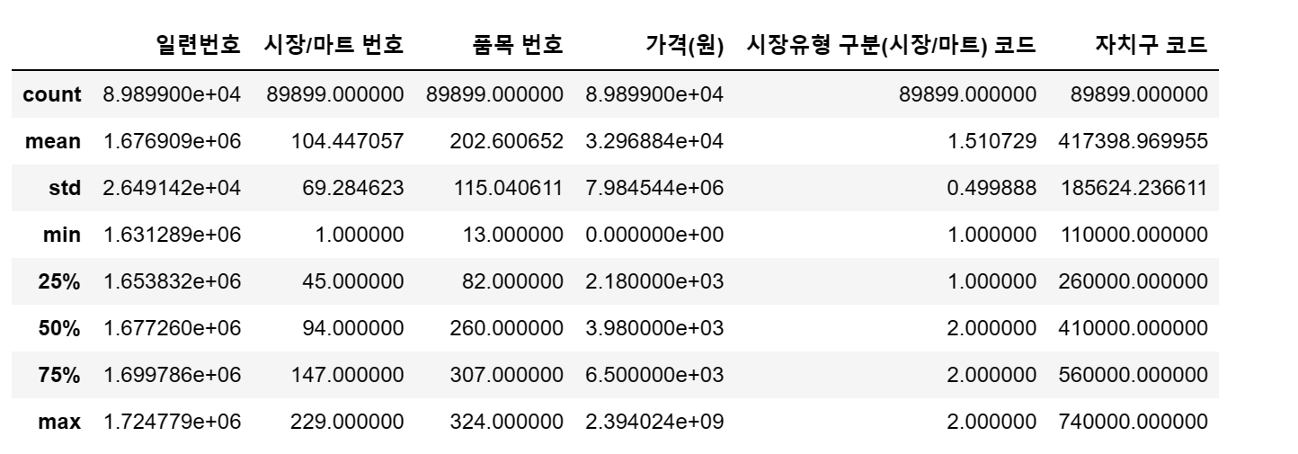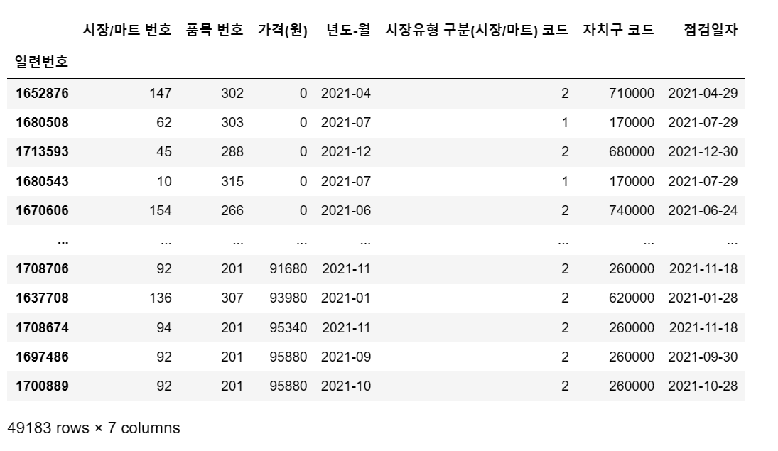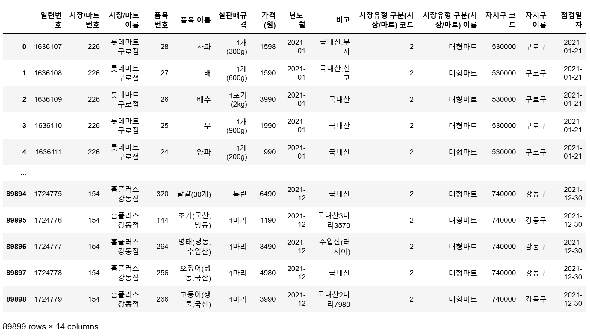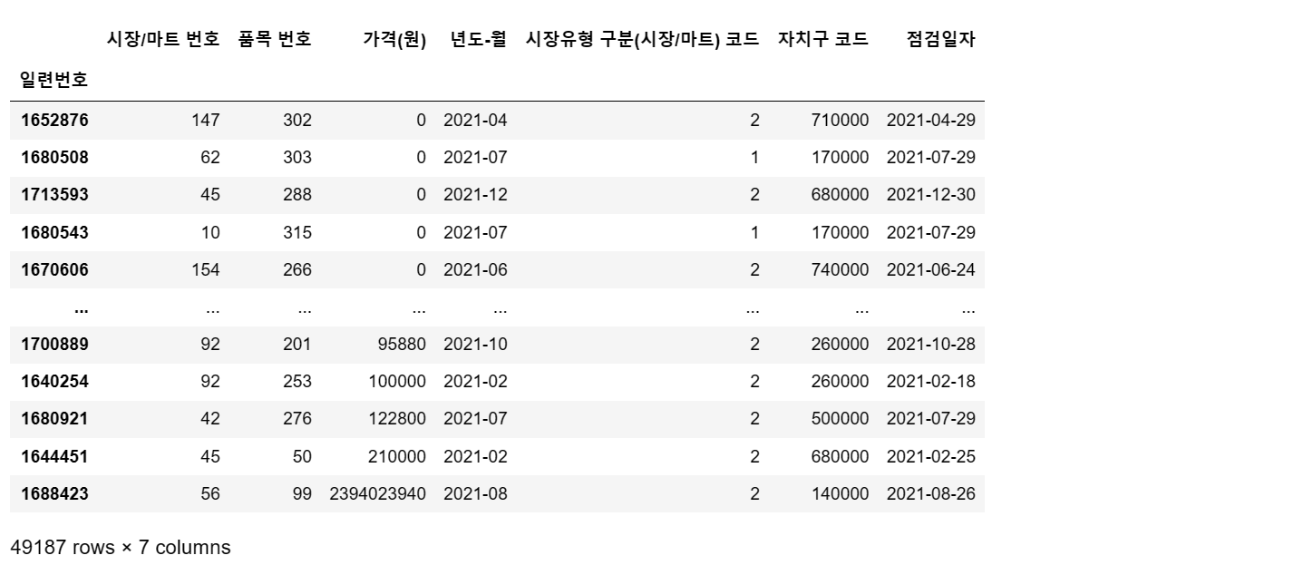 df = pd.read_csv('C:/myPyCode/data/2021_물가/생필품_농수축산물_가격_정보(2021년).csv', encoding = 'cp949')