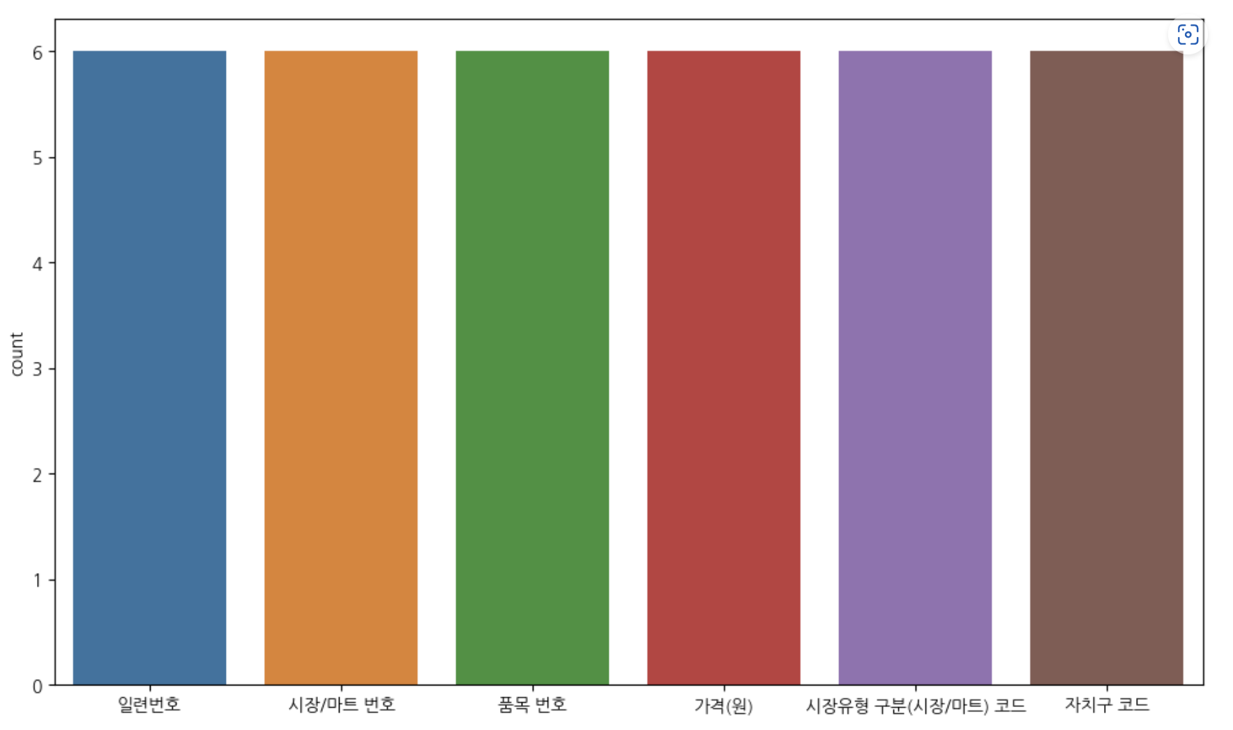 sns.countplot(data=df.head(6).sort_values(by = '품목 이름', ascending = True))