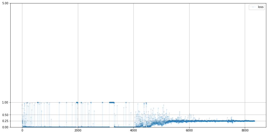 df.plot(ylim=(0), figsize=(16,8), alpha=0.1, marker='.', grid=True, yticks=(0, 0.25, 0.5, 1.0, 5.0))